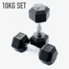 10kg Rubber Coated Dumbbell Set Cast Iron Tri Grip Rubber Plates