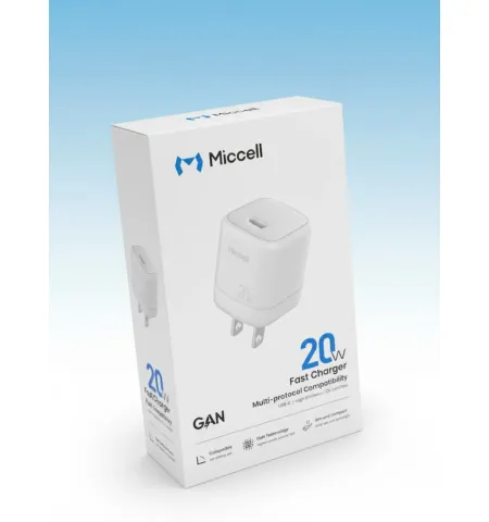 MICCELL 20 watt GaN Adapter | Fast Charging Support | 2 Years Replacement Guaranty | VQ-T20 | Folding Pin