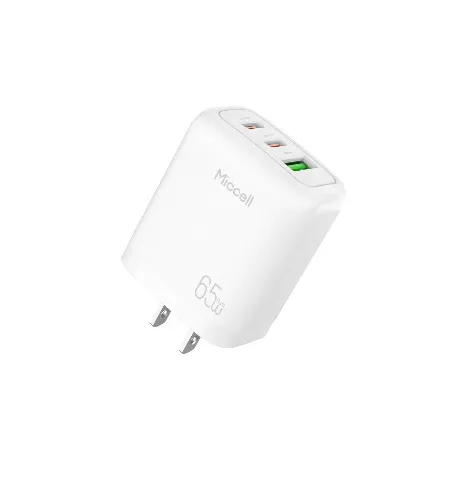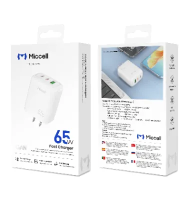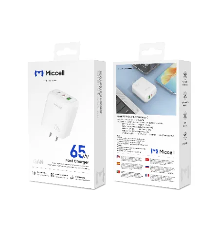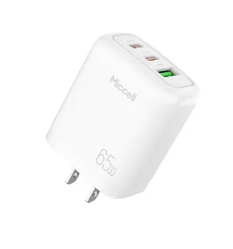 MICCELL 65W GaN Charger | 3-Port Fast Charging Adapter (2×USB-C + USB-A) | PD Power Delivery | Universal 110–240V | Travel-Friendly | VQ-65W