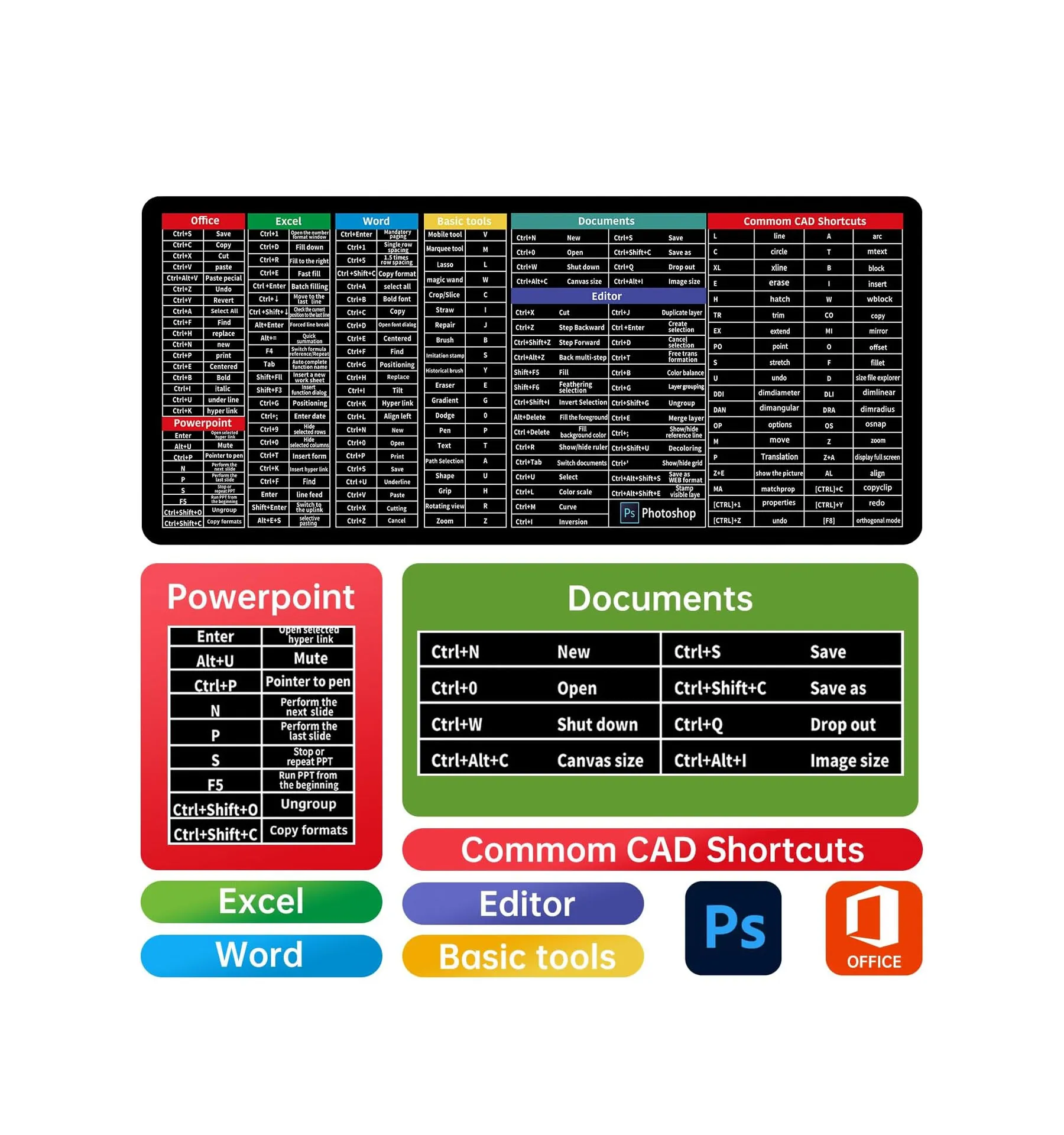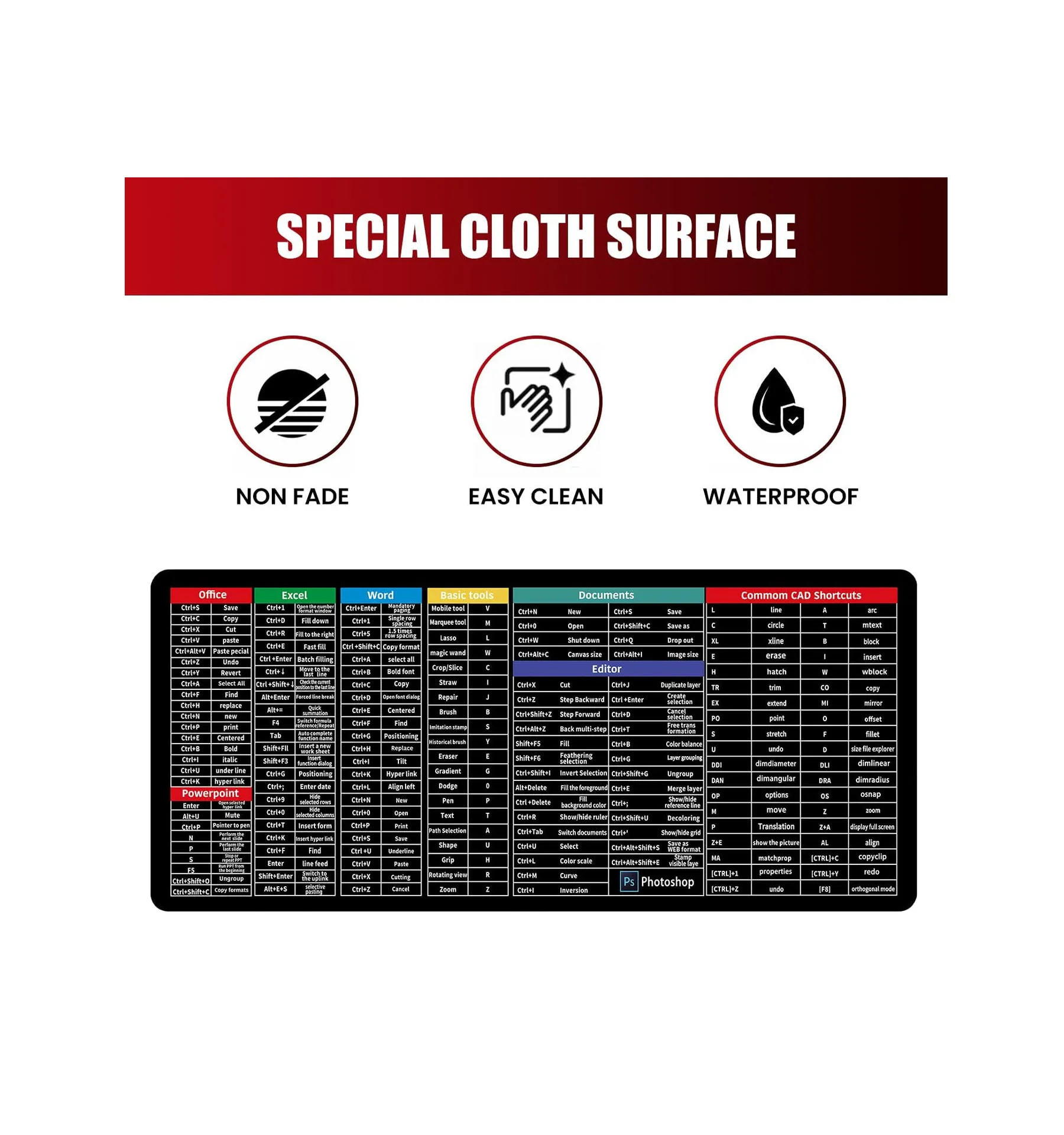 | Model | Microsoft Office Shortcuts Printed Mousepad |