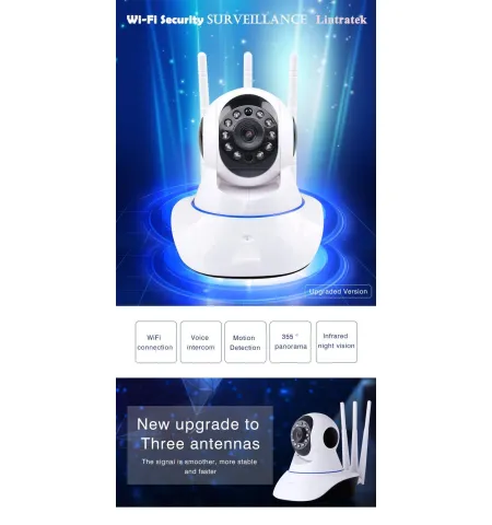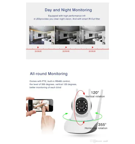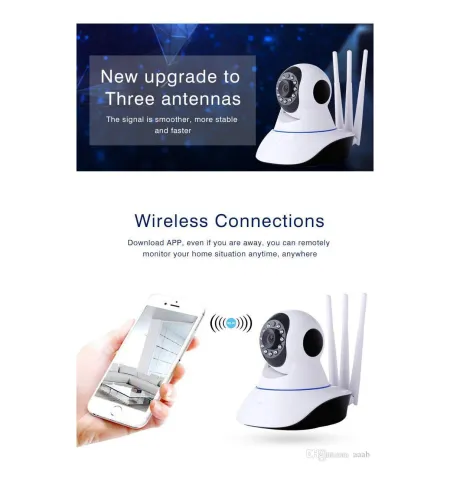 - Three wifi antennasNew IP camera with three antennas, provide your fluently control of cellphone. never afraid the camera offline.11 IR lights11 pcs High Resolution IR-CUT Lights, provide with you 10m night vision viewTwo Ways AudioTwo ways audio, not any delay, not with any noise, communication is so easy.HD 1080P1080*1920 resolution, provide with you the most clearly and real view, everything can not escape your eyes.Plug and PlayPlug & Play, just need to download APP, not need any wire, just one minute, can finish the installation.Inside, Flat, Ceiling InstallationWith the accessories of installation, can install on ceiling and wall, just follow your want.Remote ControlSupport P2P technology and remote control, you can get what happen even you are far away from home.APP ControlBase on Yoosee APP in different languages, with large function, stable operation and never offline.Motion DetectionHigh sensitivity of motion detection, alarm can notify you immediately when get any abnormal situation.Wifi CameraNot need to keep strong signal to link, as long as with weak wifi signal, camera can be linked.