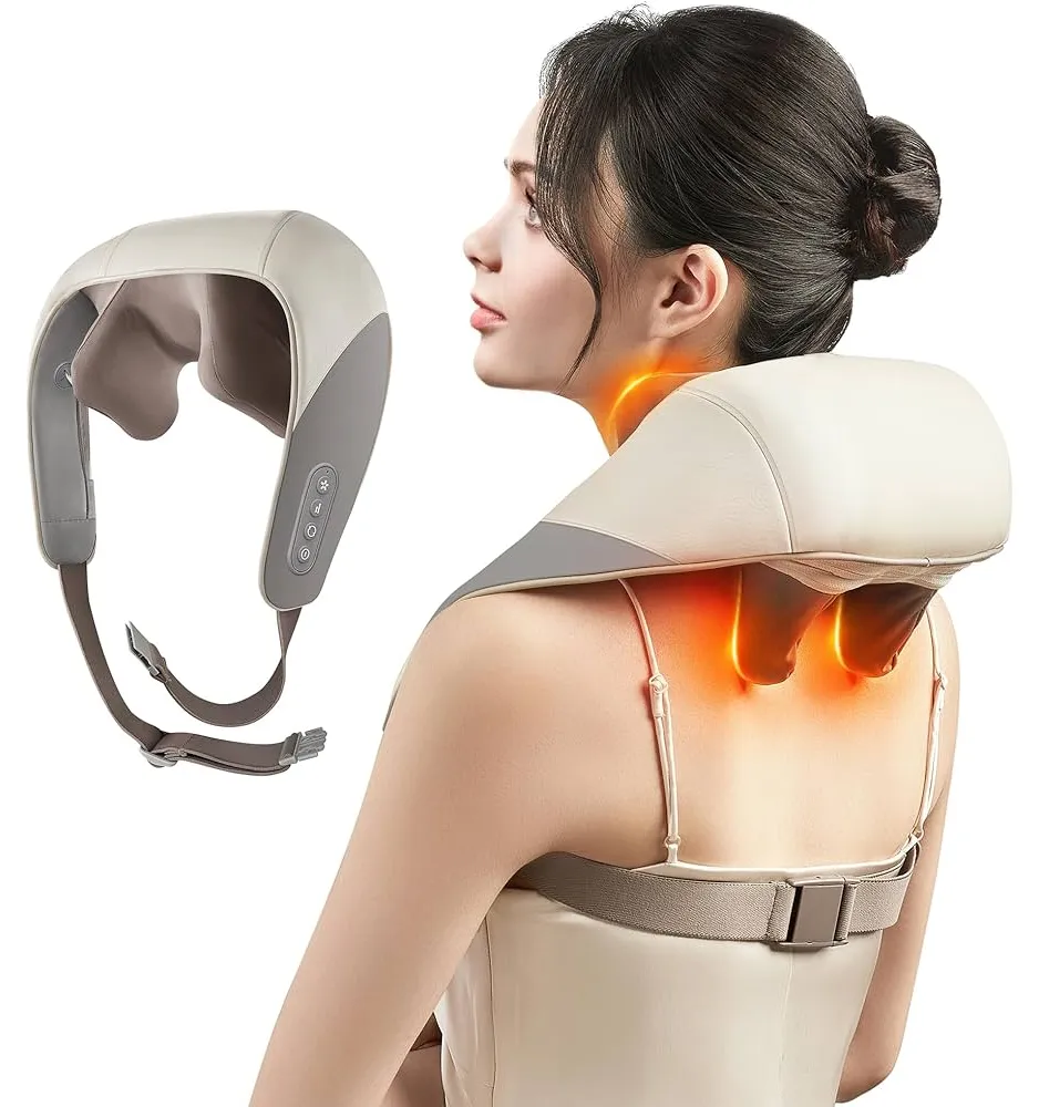 - ➤(MASSAGER WITH HEAT) The Neck Massager is a professional masseur customized for you. Saving you money and time. It has a heat function, and there 2 heat compress settings (104℉/111℉) for you to choose from, which allows you to heat your neck, and shoulders back to further relieve your discomfort. It automatically shuts off after 10 minutes to prevent overheating while you doze off during relaxation.