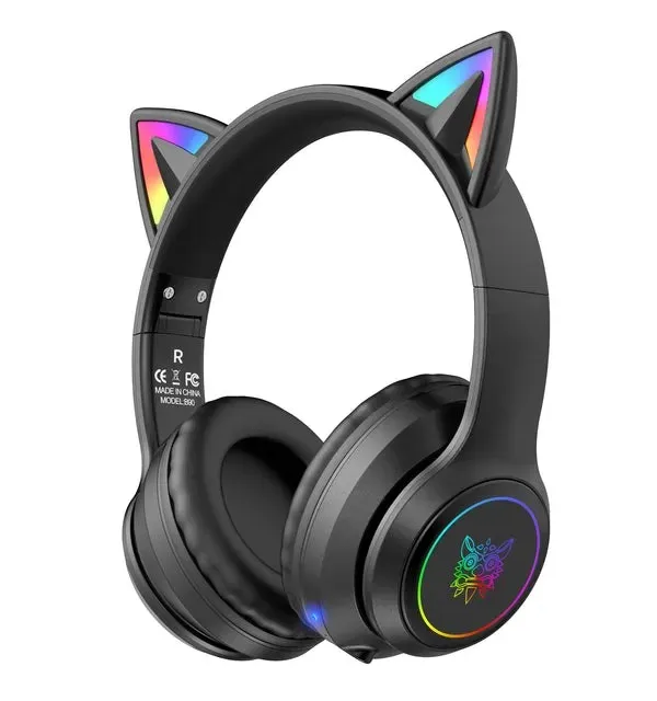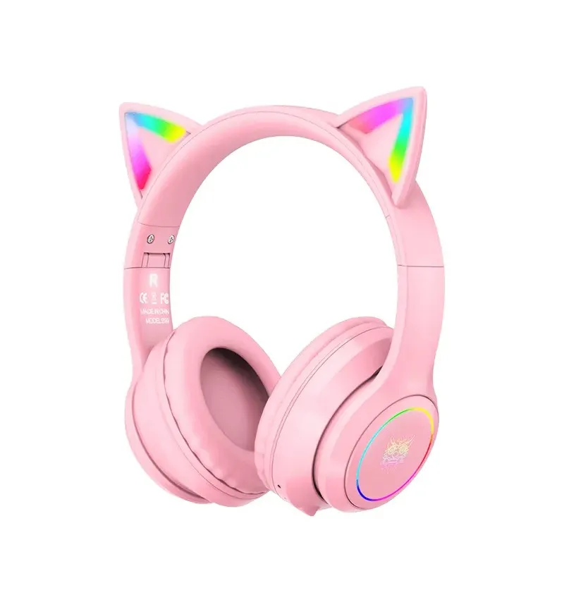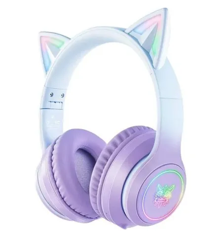 The Onikuma B90 RGB Cat Ear Wireless Gaming Headset features Bluetooth 5.3, vibrant RGB lighting, detachable cat ears, and immersive stereo sound. It offers a built-in mic, low-latency audio, and a playful design ideal for gamers.