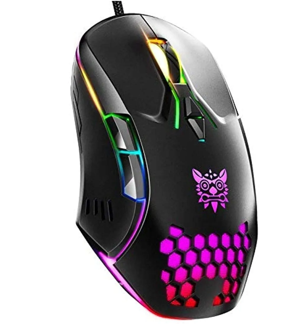 The ONIKUMA CW902 Wired Gaming Mouse offers a high-performance experience with its 6400 DPI sensitivity and ergonomic design. It features customizable RGB lighting, seven programmable buttons, and a lightweight honeycomb shell for enhanced comfort during extended gaming sessions. Compatible with Windows and Linux systems, it provides plug-and-play functionality without the need for additional drivers.