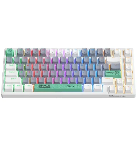 The ONIKUMA G52 is a compact 82-key wired gaming keyboard with mechanical blue switches, vibrant rainbow RGB backlighting, USB connectivity, and a fun, cute keycap design for PC and Mac.