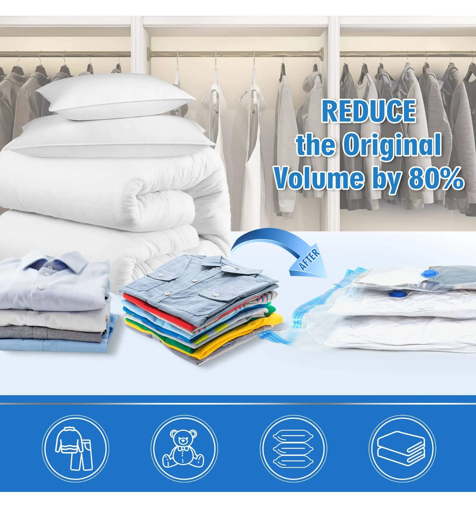 Pack of 5 Reusable Zip Lock Vacuum Storage Bags | Space Saver Compression Bags with Hand Pump