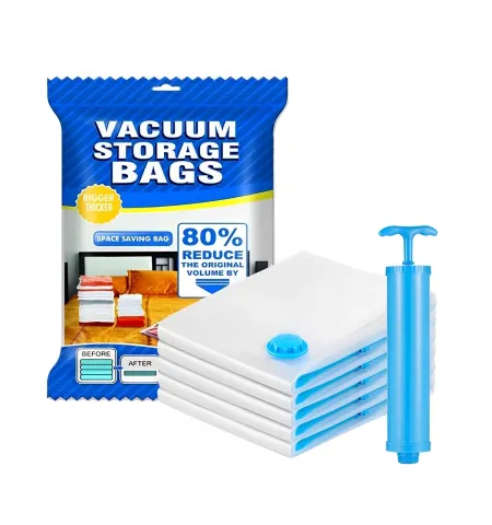 Pack of 5 Reusable Zip Lock Vacuum Storage Bags | Space Saver Compression Bags with Hand Pump