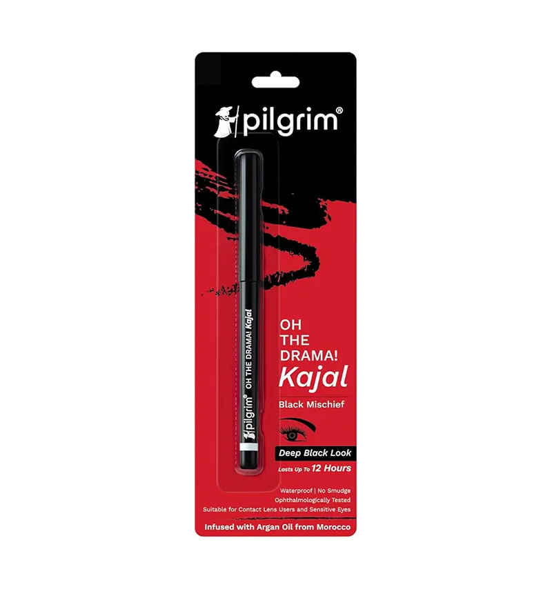 Pilgrim Black Mischief Kajal Smudge & Waterproof Single Stroke Matte Finish Lasts Up To 12Hrs - 35gm
