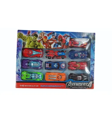 The Avengers Toy Racing Cars Set is an exciting collection of miniature cars inspired by popular Marvel superheroes. Each car features colorful designs representing characters such as Iron Man, Spider-Man, Hulk, Captain America, and other Avengers heroes.