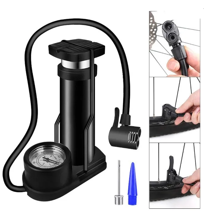 Portable High-Pressure Bicycle Foot Pump with Pressure Gauge – Mini Bike Tire Inflator Accessory