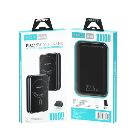 The Ansty AP‑058 is a versatile and high-performance 10,000 mAh power bank designed to keep your devices powered on the go. MagSafe-compatible, it offers convenient magnetic wireless charging for supported devices, allowing you to snap your phone into place and charge without cables. It also supports fast wired charging with a powerful 22.5W PD output, making it suitable for quickly powering smartphones, tablets, and other USB-C compatible gadgets.