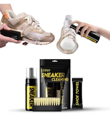- Complete shoe cleaning kit including 150ml foam cleaner, brush, and microfiber towel