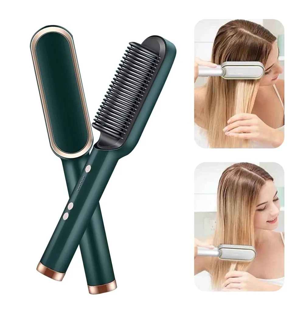 - • 2-in-1 Brush & Straightener – Combines detangling and straightening in one tool for quick and easy styling.