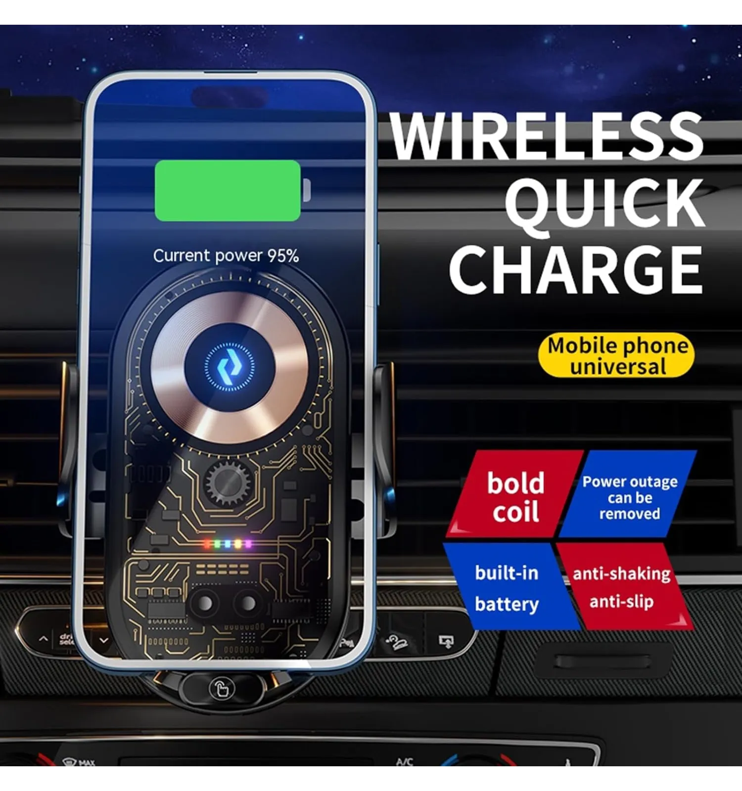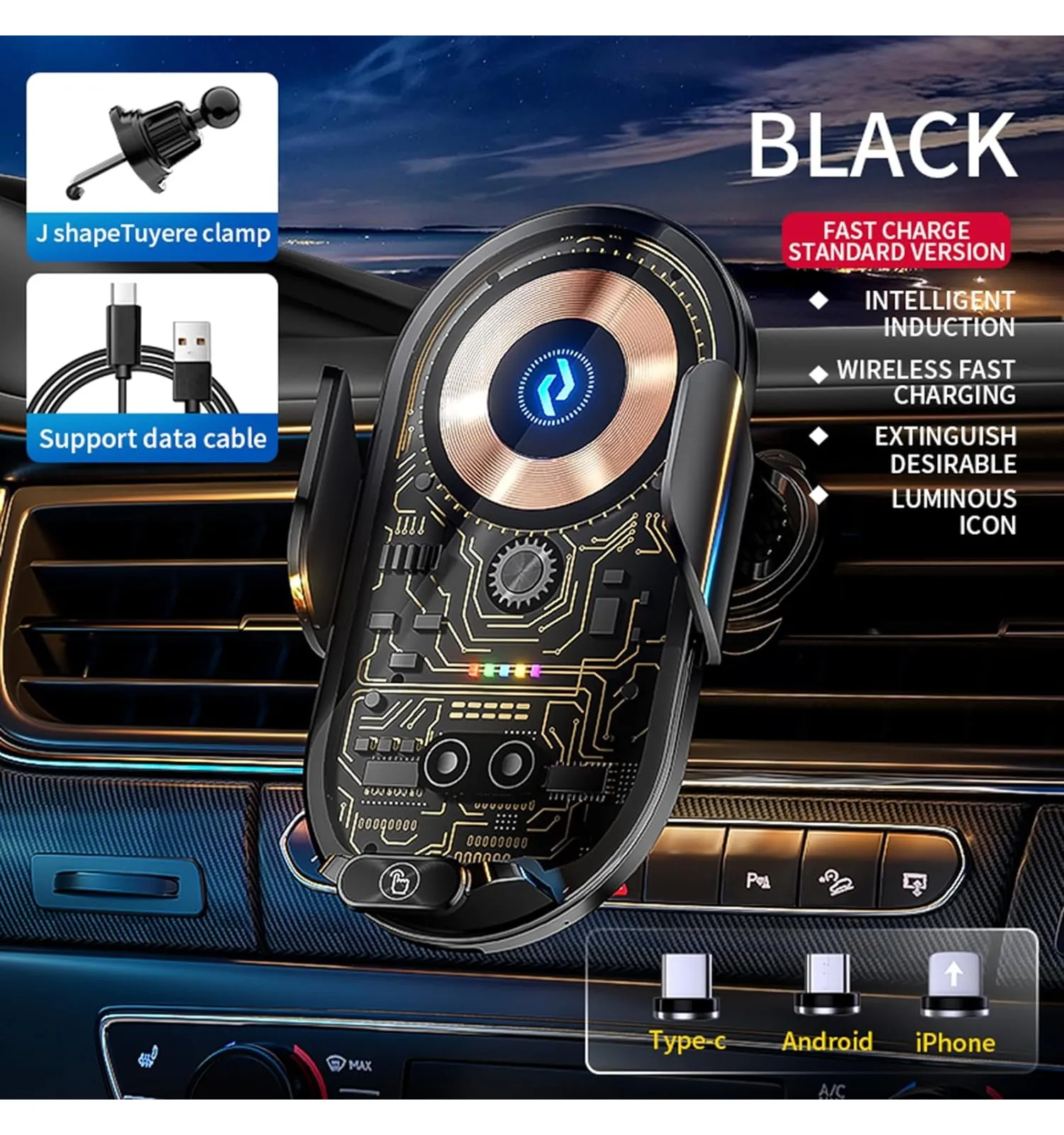 - Fast Wireless Charging – Supports Qi wireless charging technology for efficient and convenient cable-free power delivery to compatible smartphones while driving.