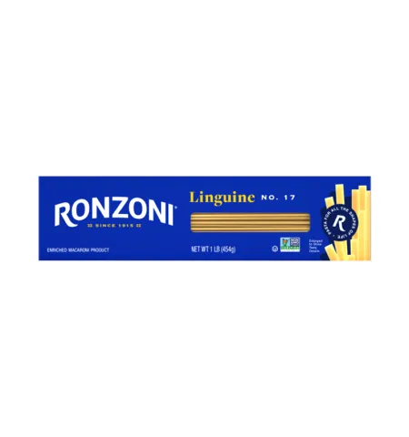 Ronzoni Linguine is known for its frequent use in clam sauces and seafood pasta dishes. But it is so much more. With its exquisite taste and texture, this narrow, flat pasta pairs well with most any pasta sauce. So, serve it up in a savory shrimp scampi, luscious lemon garlic sauce, or decadent carbonara. Each 16 oz box contains up to 8 servings so you can share your favorite pasta dish with more than a few of your favorite people. A delicious foundation to wholesome meals, Ronzoni pasta is low fat, sodium- and cholesterol-free, vegetarian, non-GMO, and made with no artificial colors or preservatives. So, dish up delicious. Serve up scrumptious. Create your next five-star recipe. With Ronzoni, you can discover and re-discover your favorite pasta. Ronzoni pasta is full of possibilities.
