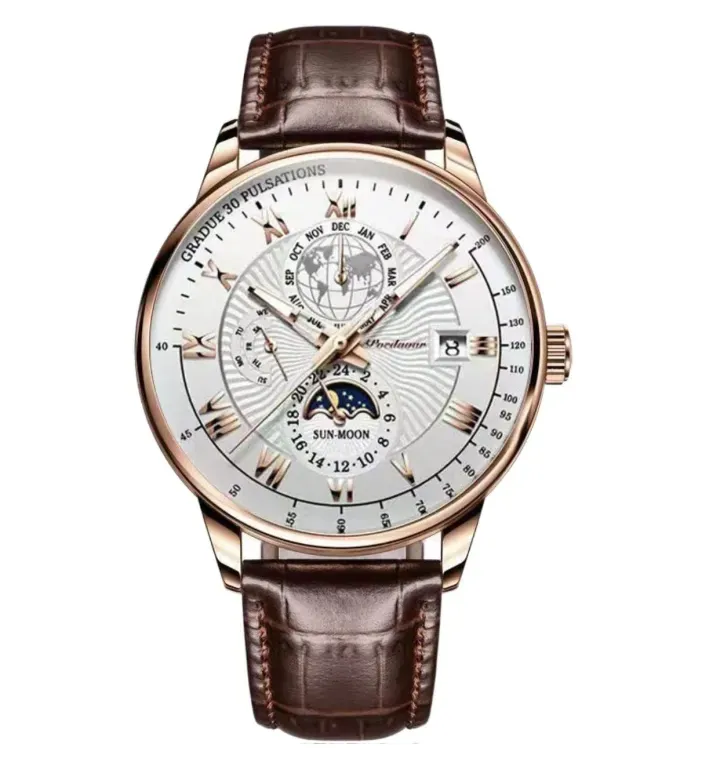 Round Dial Stainless Steel Leather Chain With Date Functionn Luxurious Business Watch For Men | Casual Dress Watch For Men