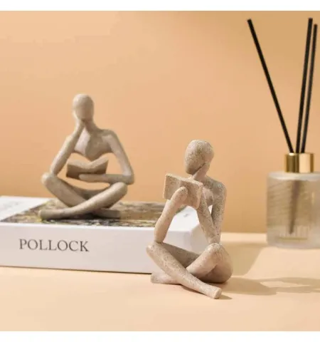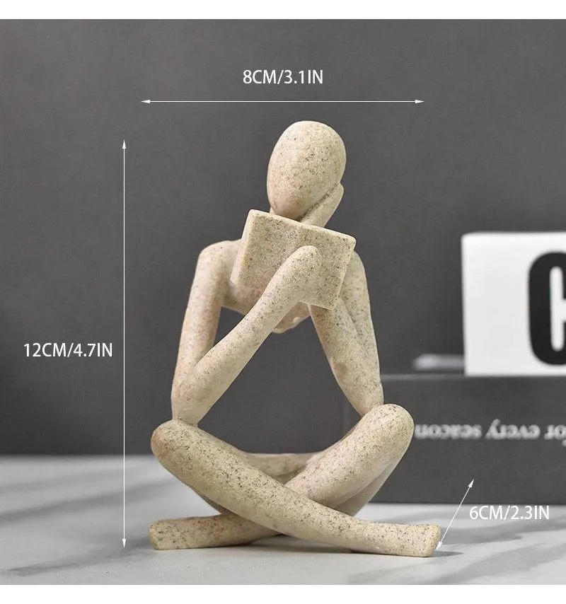 Sand Abstract Reading Books Figurine Thinker Statue Resin Sculpture