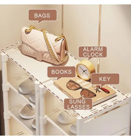 - Multi-Tier Capacity: Multiple shelves provide organized storage for many pairs of shoes, keeping your floor clutter-free.