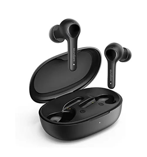 The Anker Soundcore Life Note is a pair of wireless earbuds with an in-ear design and stem. The buds feature a 6-mm graphene driver and Anker’s BassUp technology for enhanced bass. They have four microphones for clearer calls with cVc 8.0 technology. The aptX technology ensures minimal sound loss during transmission. The earbuds provide 7 hours of battery life, extendable to 40 hours with the charging case. Available in black and white.On opening the box of Anker Soundcore Life Note, you are met with a horizontal case with an LED light.