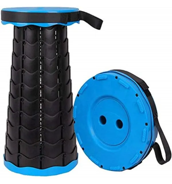 - The pack size is only 26cm in diameter and weighs just 1kg/2.8lbs. This retractable stool is portable, lightweight, small and compact to place into luggage or storage. The adjustable strap makes the chair easy to carry in your hand or hanging on your shoulder. Ideal chair for everywhere you go and anytime you want to sit down so feeling perfect!