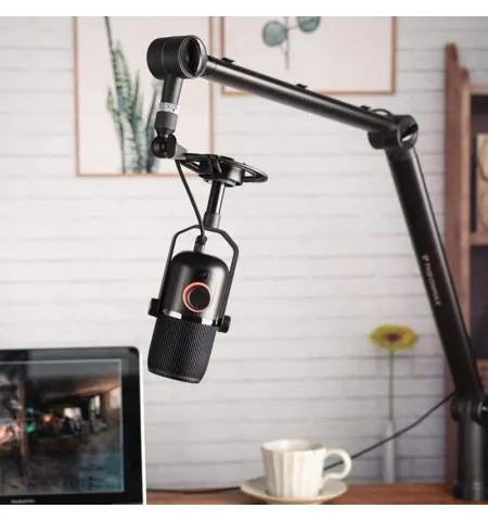 This microphone boom arm offers smooth and precise movement with a 360-degree rotating mechanism, allowing users to position their microphone exactly where needed. The rotary knob ensures secure tightening and stable positioning during use.