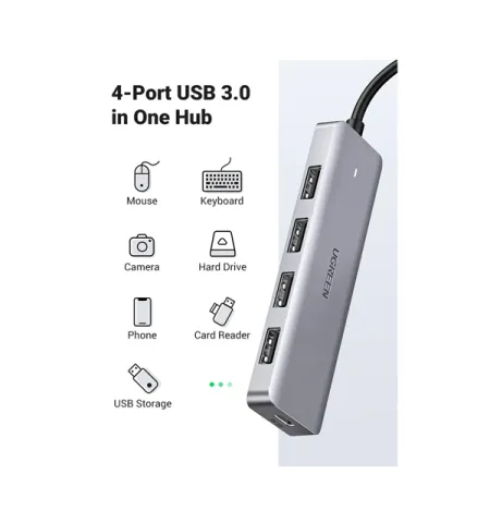 Expand your USB-C connectivity with the UGREEN Type-C 3.0 to 4 Ports Adapter. Experience 5Gbps SuperSpeed transfers, connect legacy devices to modern computers, and enjoy OTG support on Android devices. Order now and transform your device connectivity.