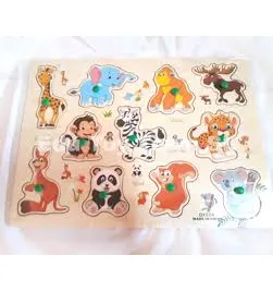 - Wooden Peg Puzzle featuring wild animal shapes