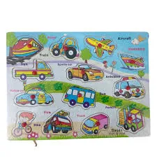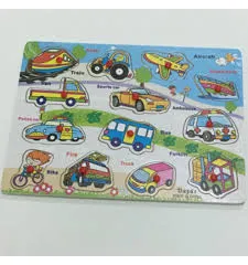 - Wooden Peg Puzzle featuring transportation vehicles