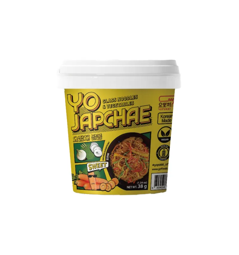 - Yopokki Spicy Japchae are delicious sweet potato glass noodles sautéed with vegetables and a spicy Korean sauce.